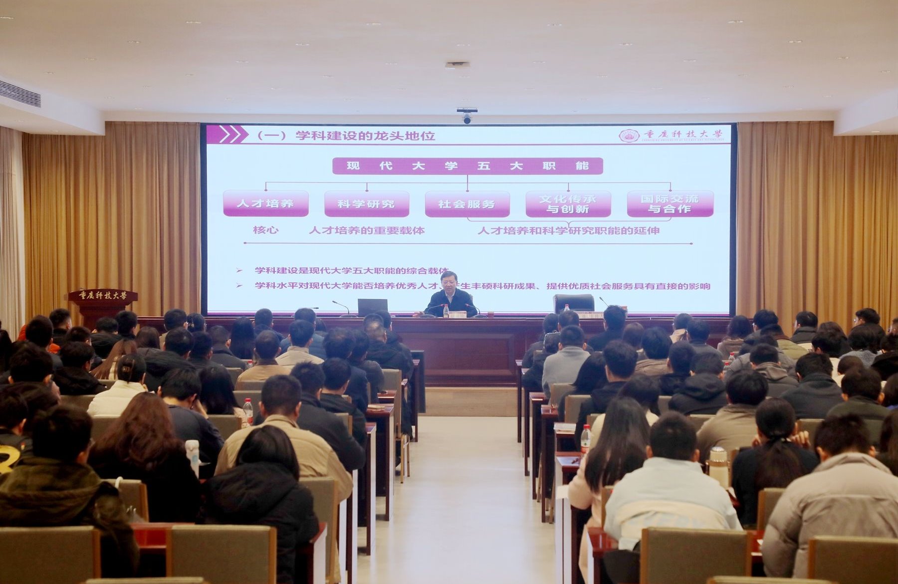赵明阶围绕“学科建设的深耕与求索”“师德师风的淬炼与弘扬”“时代使命的认知与担当”三大维度,系统阐述了学校在高水平应用研究型大学建设中的战略路径与实践成效。他深入解读了“强工、厚理、兴文、促交叉”的学科发展思路,阐释了“1238”学科建设机制和“11351”产教融合人才培养体系。他带领大家重温《新时代高校教师职业行为十项准则》,并结合教育部“红七条”“六禁令”及典型失范案例,警示新教师严守底线、涵养师德,做到“心有大我、至诚报国”“言为士则、行为世范”。