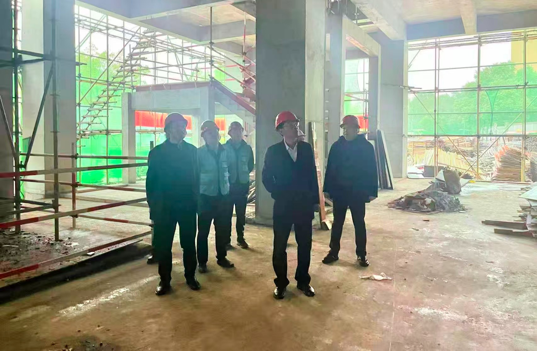 在工地现场,朱永利一行实地查看了项目施工进展、安全文明措施落实、质量管控等情况,听取了施工单位关于人员组织、施工进度、安全防控、民工工资支付保障等工作的汇报。朱永利对在建项目的进展情况表示肯定,对参建各方的辛勤付出表示感谢。就做好岁末年尾的施工组织工作,他提出三点要求:一是压实安全生产责任。紧紧围绕冬季施工的特点,施工单位要切实履行安全生产主体责任,代建单位和监理单位要切实履行安全生产监管责任,紧盯易发多发安全隐患的环节,聚焦动火作业管理、消防管理、高空作业、临时用电、有限空间作业等关键环节,对施工现场、民工住宿区、管理人员办公区持续开展安全隐患排查整治,落细落实各项防护措施,坚决杜绝安全事故发生。二是确保工程质量和进度。基建处、代建单位、监理单位要强化施工过程管控,督促施工单位严格执行施工工艺和有关技术标准,加强工程材料、隐蔽工程、分部分项工程、专项工程等验收,确保工程质量。要紧紧围绕项目建设目标任务,加强统筹协调,优化施工组织,在确保安全与质量的前提下,科学合理安排工期,加快工程进度,确保项目按期建成投用。三是切实维护和谐稳定。要高度重视并切实做好农民工工资支付工作,确保及时足额发放,保障农民工合法权益。要加强施工人员的人文关怀与安全教育,做好冬季施工防寒保暖等后勤保障,营造安全、稳定、有序的建设环境。