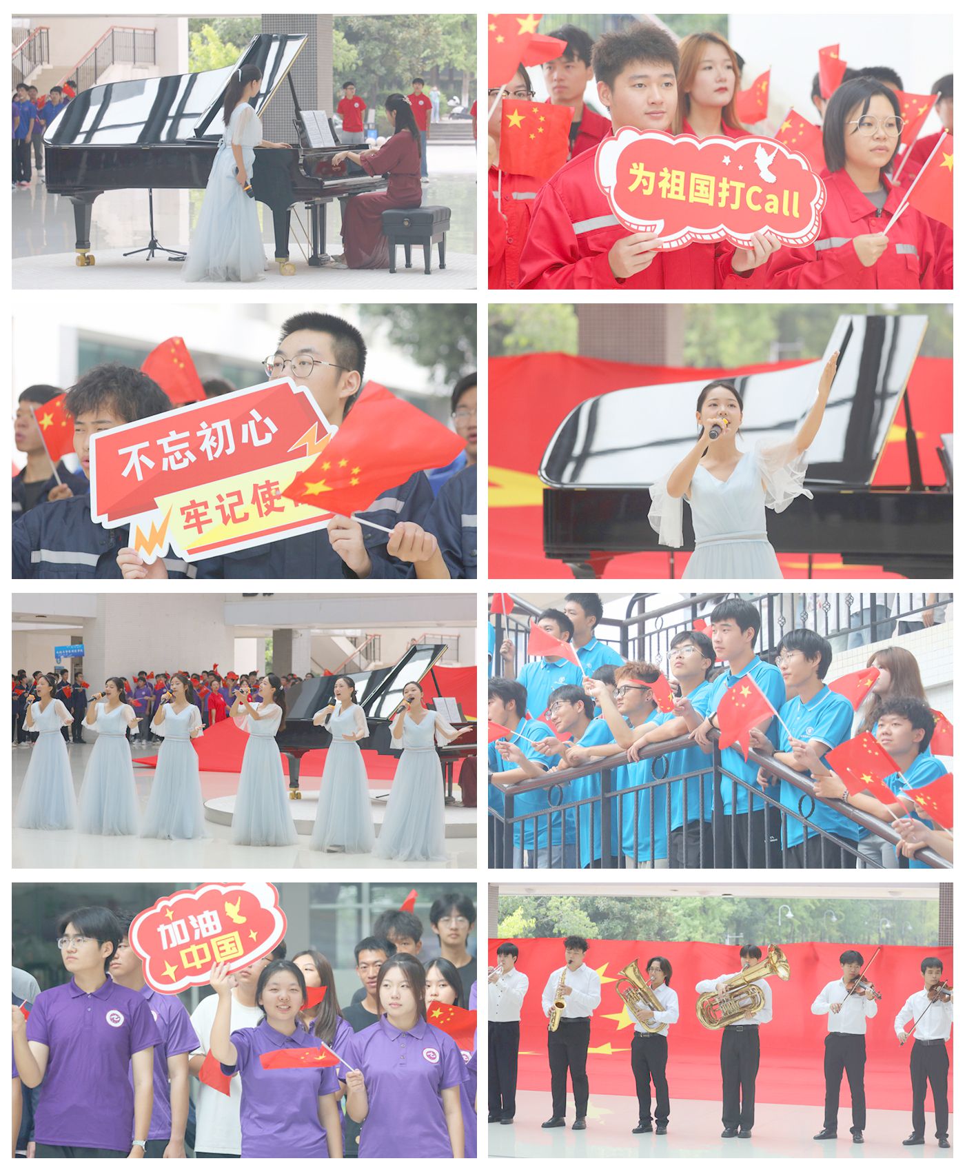 在中华人民共和国成立76周年之际,为积极响应学校“笑起来 动起来 唱起来”的号召,进一步凝聚师生爱国情怀、激发奋进力量,10月1日上午,学校在教学主楼大厅隆重举行“礼赞祖国”快闪活动。学校党委书记黎德龙与千余名师生代表齐聚一堂,在钢琴与管乐的深情伴奏中,以嘹亮歌声向伟大祖国献上崇高的敬意与真挚的祝福。