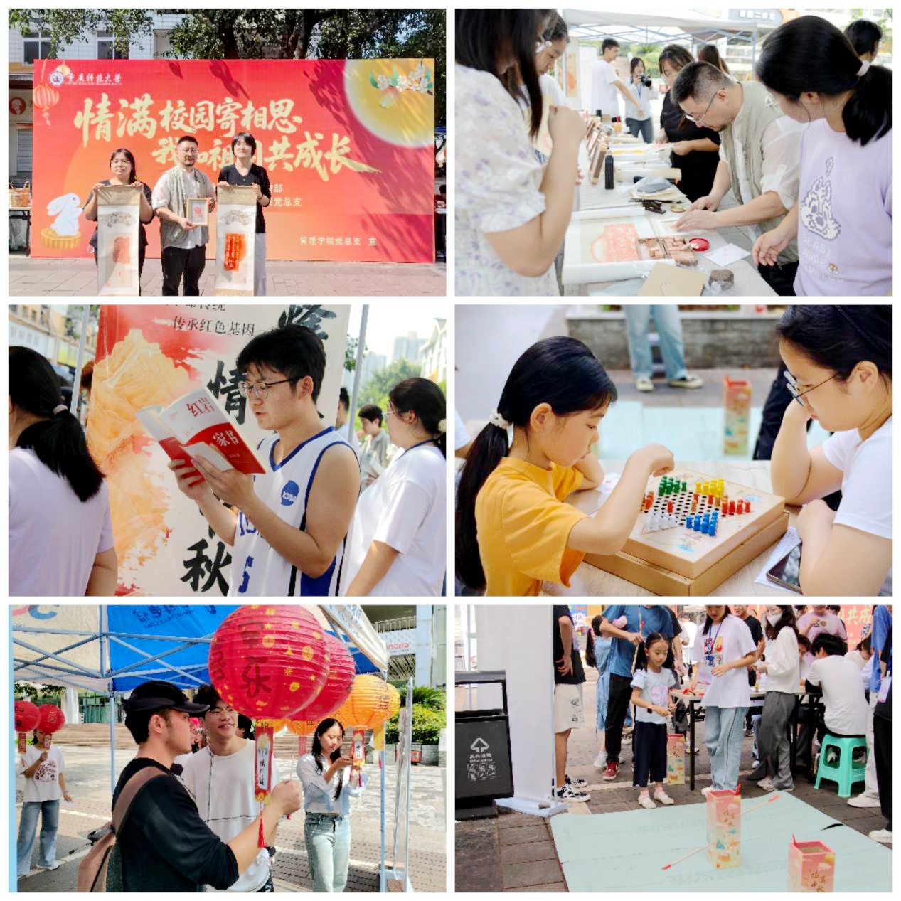 “今夜月明人尽望,不知秋思落谁家。”为庆祝中秋佳节,弘扬中华优秀传统文化,10月6日,由学校党委宣传部主办、管理学院党总支承办的“情满校园寄相思·我和祖国共成长”2025年中秋节主题文化活动在容园商业街热情上演,吸引了500余名在校师生欢聚一堂、共庆佳节。