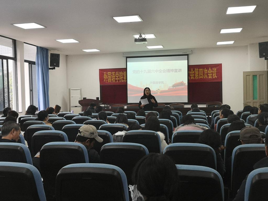 [党史学习教育(421)]外国语学院组织全院教职工专题学习党的十九届六中全会精神