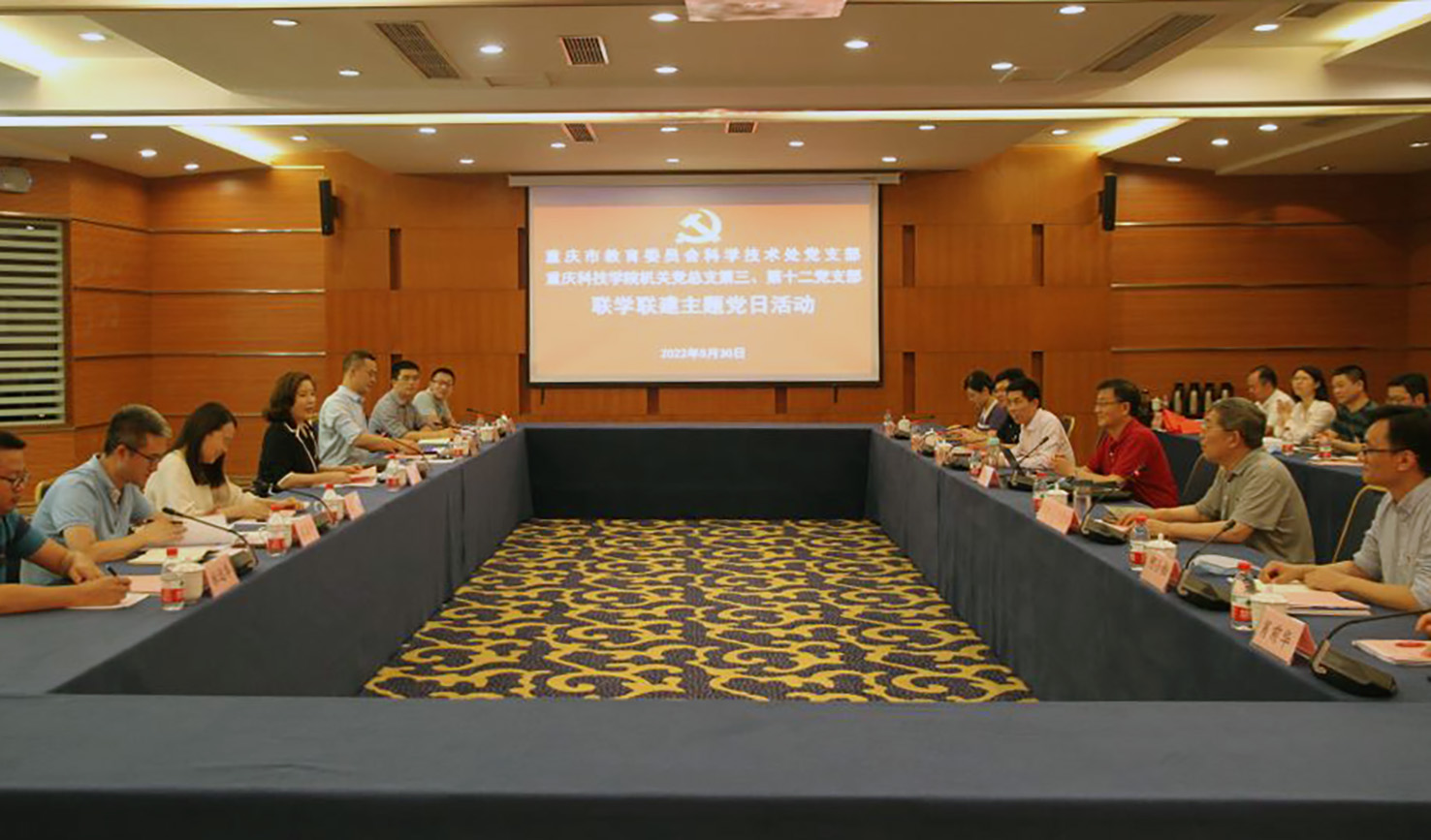 5月30日下午,重庆市教育委员会科技处党支部与我校机关第三党支部和第十二党支部联合开展主题党日活动,并实地调研和指导了我校科研平台建设和基层党组织建设。市教委科技处处长兼党支部书记刘畅、副处长樊汶樵、全体党员,我校党委常委、副校长肖大志,副校长刘德绍,机关第三党支部和第十二党支部党员参加了活动。