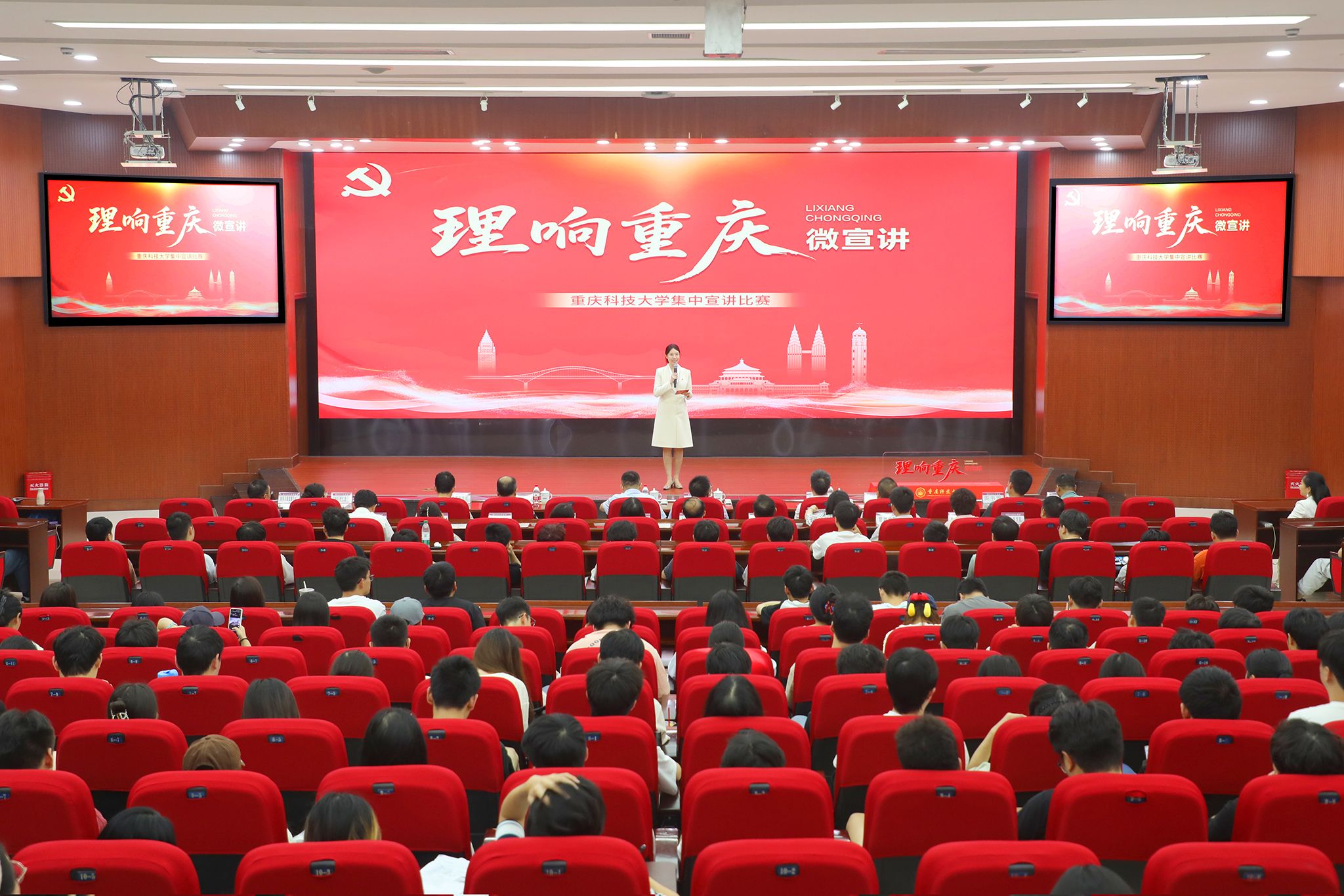 为深入学习贯彻习近平新时代中国特色社会主义思想,全面贯彻党的二十大和二十届二中、三中全会精神,学习宣传贯彻习近平文化思想,持续推动党的创新理论“飞入寻常百姓家”。6月27日晚,学校在学术报告厅举行“理响重庆”微宣讲比赛。