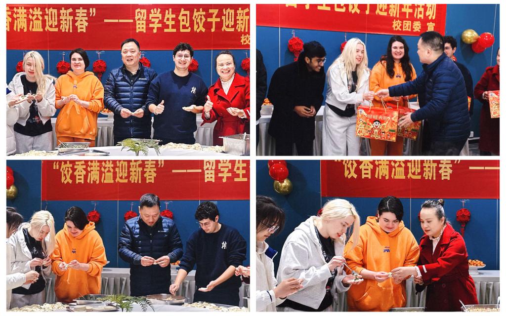 On the morning of January 24th, Chongqing University of Science and Technology (CQUST) organized a dumpling and tangyuan (glutinous rice ball)-making event at Heyuan Dining Hall to celebrate the Lunar New Year. Vice President Zhou Xiong, leaders from the International Affairs Office and Youth League Committee, along with faculty advisors, joined international students and local student representatives staying on campus for the occasion.