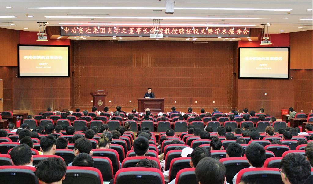 In the afternoon of October 29, Xiao Xuewen, the chairman of CISDI Group CO., LTD., make a visit to our university. The ceremony for the appointment of Xiao Xuewen as Distinguished Professor was held in the lecture hall. Nearly 400 representatives were present, including officials of CISDI, President Yin Huachuan, Vice President Xiao Dazhi, department heads, and representative faculty and students from theSchool of Metallurgy and Materials Engineering attended the ceremony. Xiao Dazhi presided over the meeting.