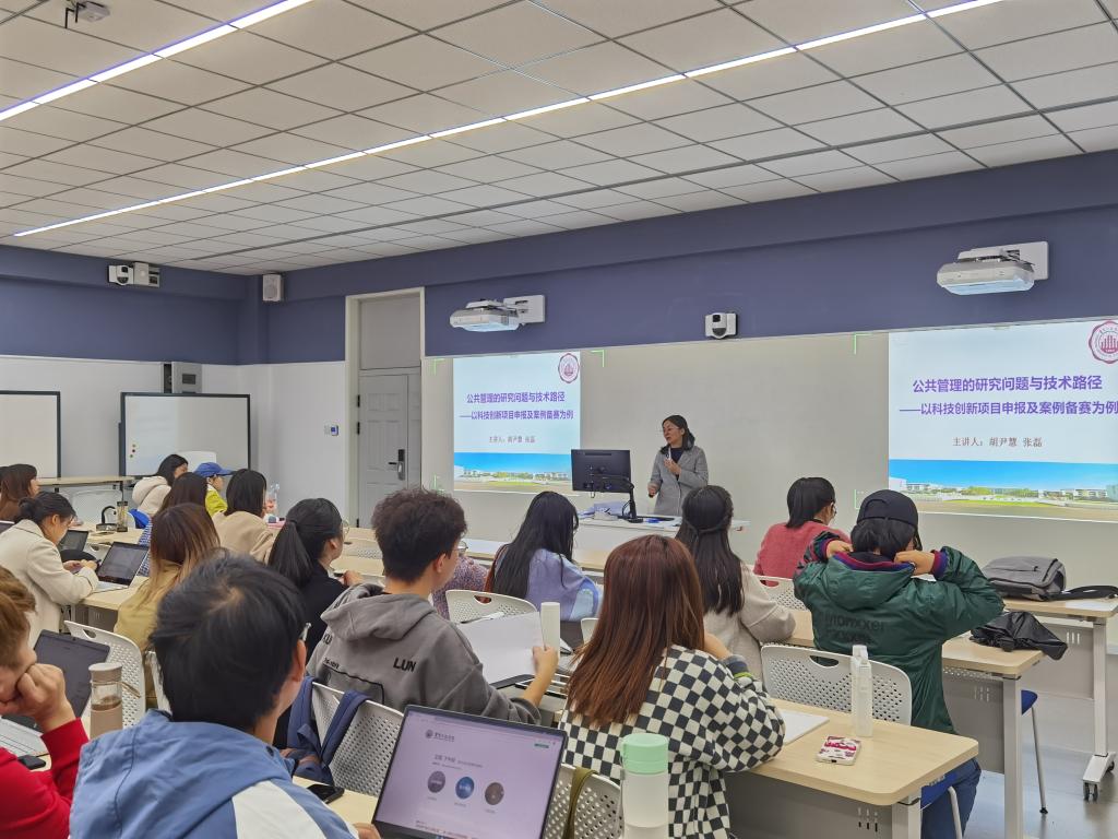 讲座中,胡尹慧副教授从公共管理问题的研究意义入手,分析了公共管理研究的问题界定、问题特性和研究问题的思路来源,结合研究生科技创新课题申报,通过具体选题例子阐释了如何从公共管理的视角切入现实并聚焦问题。张磊博士进一步结合全国公共管理研究生案例大赛对如何发掘和把握公共管理研究问题做了深入分析,详细讲述了案例大赛中的问题意识要求,从四个方面呈现了案例选题时问题的来源,在案例文本撰写中如何从公共管理的角度分析和解决现实问题。