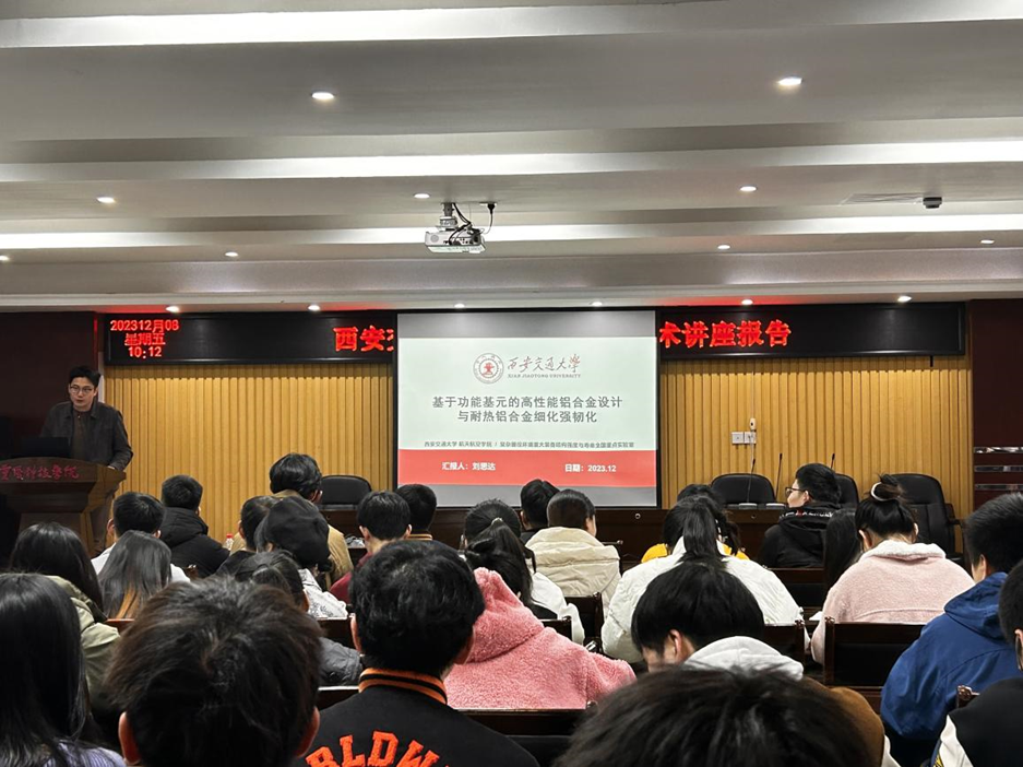 12月8日上午,西安交通大学刘思达教授应邀在砺志楼L215会议室作题为“基于理论计算的高性能合金涂层设计与耐热铝合金细化强韧化”的学术报告。冶金与材料工程学院专任教师、研究生、本科生等120余人参加报告会。副院长戴庆伟(主持工作)主持报告会。