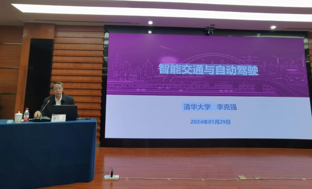 第二阶段学术报告会在办公楼105会议室举行,李克强为我校师生作了一场题为“智能交通与自动驾驶”的学术报告。报告从汽车智能驾驶系统动态设计与控制的理论研究,技术攻关和产品研发,汽车智能化技术演进及其产业化发展的重大需求,“控制协同、结构共用、车云融合”三大技术等方面展开。李克强分享了研究经验并就智能网联汽车发展方向提出了自己的见解,并鼓励同学们珍惜求学机会,为加快实现我国高水平科技自立自强贡献自己的力量。
