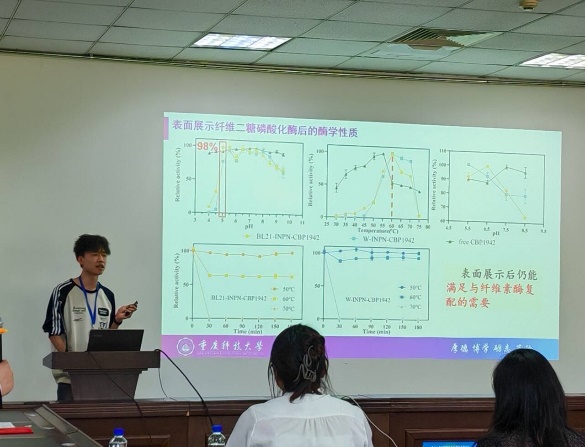 第十八届全国研究生生物质能研讨会于5月9日至5月11日在天津举行,我校化学专业研究生何肖、环境工程专业研究生成健和制药工程专业田甜参加了本次研讨会。何肖和成健分别做了题为《低β-葡萄糖苷酶的纤维素酶促进玉米秸秆转化红景天苷》和《挖掘新型纤维二糖磷酸化酶促进玉米秸秆转化为葡萄糖-1-磷酸》的口头报告,并进行了墙报交流。
