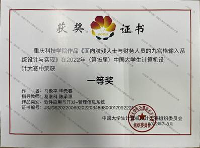 其中,智能技术与工程学院葛继科、陈承源老师指导的学生马象平、毕元春作品《面向肢残人士与财务人员的九宫格输入系统设计与实现》在软件应用与开发大类中荣获一等奖,这是我校学生参加该赛事以来所获得的最好成绩,取得了历史性突破。