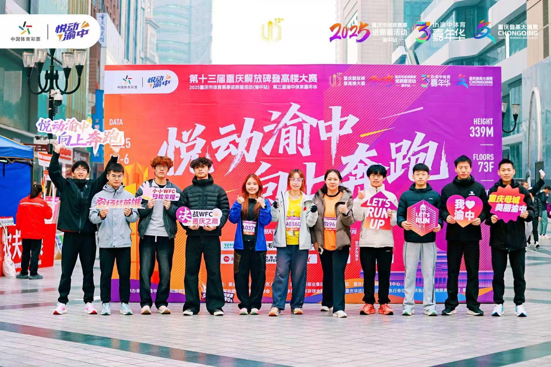 12月6日,第十三届重庆解放碑登高楼大赛在渝中区解放碑核心商圈成功举办。近千名选手向着重庆环球金融中心(WFC)73层观景台发起冲击,于山城之巅竞逐天际线荣耀。我校定向队队员不畏挑战、奋勇攀登,表现亮眼。来自我校的杨秋桔、谢颖、庹稀骄、易太元、许闻、韦江涛、陈渝豪、边佳昊、熊鹏、王波共计10名队员悉数出战大众组,最终全员刷新个人最好成绩(PB),尽显扎实的体能储备与昂扬向上的竞技风貌。