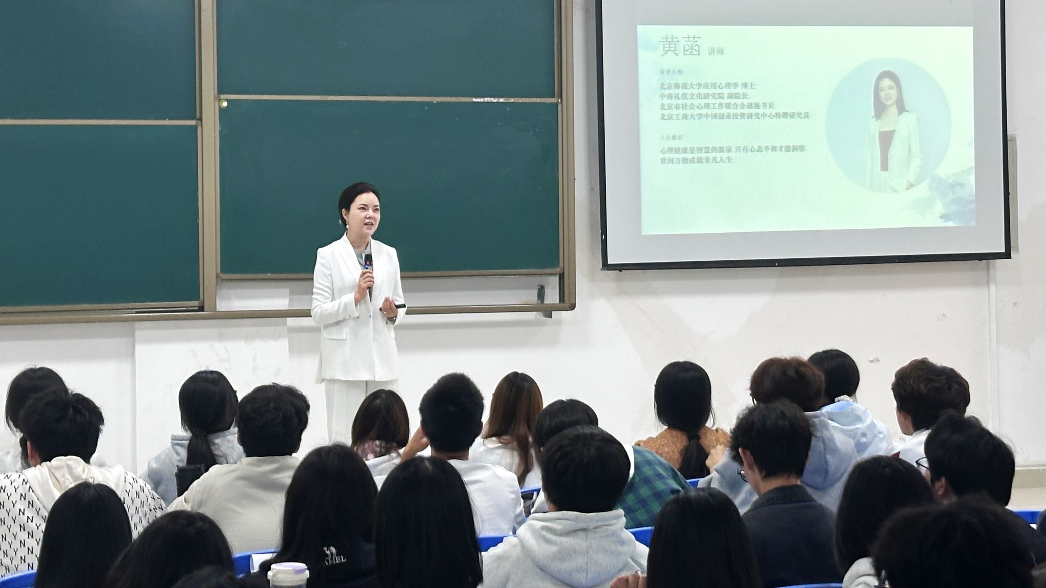 讲座过程中,黄菡博士从如何认识自我、如何绘制职业蓝图等方面,与同学们共同深入探讨了职业规划的每一个关键节点。从职业心理、个人兴趣定位、就业前景分析等多维角度,为新生们解析了如何科学规划大学生活与未来职业路径。本次讲座反响热烈,不仅帮助新生们拓宽了视野,更激发了同学们的专业认同感,提升了学习动力,为其大学四年的成长规划提供了宝贵的指引。