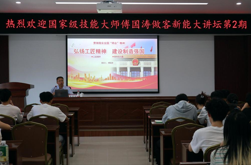 5月21日下午,材料与新能源学院举办“新能大讲坛”第二期活动,特别邀请中国船舶集团首席技师、国家级技能大师工作室领衔专家傅国涛作题为《弘扬工匠精神 建设制造强国》的专题讲座。学院2023级和2024级研究生100余人现场聆听讲座。