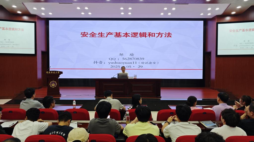 5月29日晚,重庆市应急管理局党委委员、副局长邹瑜应邀来到我校,为师生作题为《安全生产基本逻辑和方法》的专题报告。本次报告会由安全科学与工程学院院长龙学渊主持,学院近400名师生到场聆听。