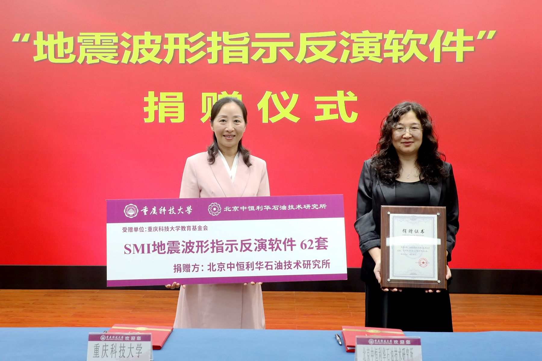 会上,邸永香代表北京中恒利华石油技术研究所向我校捐赠了“SMI地震波形指示反演软件”62套,总价值1000万元,星空彩票苹果手机下载安装教育基金会秘书长王燕代表我校接受了捐赠。