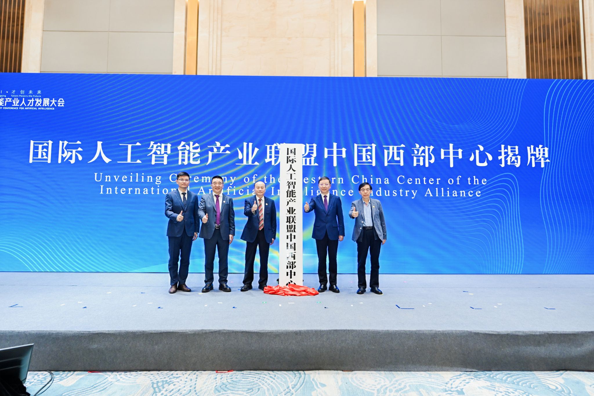 11月15日,人工智能产业人才发展大会在重庆悦来国际会议中心召开。作为重庆国际人才交流大会的重要组成部分,本次大会以“渝悦AI·才创未来”为主题,汇聚国内外人工智能领域院士专家、企业代表、高校科研人员及优秀人才代表约160余人,共商人工智能产业人才发展大计。会上,校长赵明阶与国际人工智能产业联盟副主席、加拿大皇家科学院院士、中国工程院外籍院士张久俊,重庆市政府副秘书长杨治洪,国际医学与生物工程学院院士张元亭,重庆市大数据发展局党组成员、副局长黄星华共同为国际人工智能产业联盟中国西部中心揭牌。