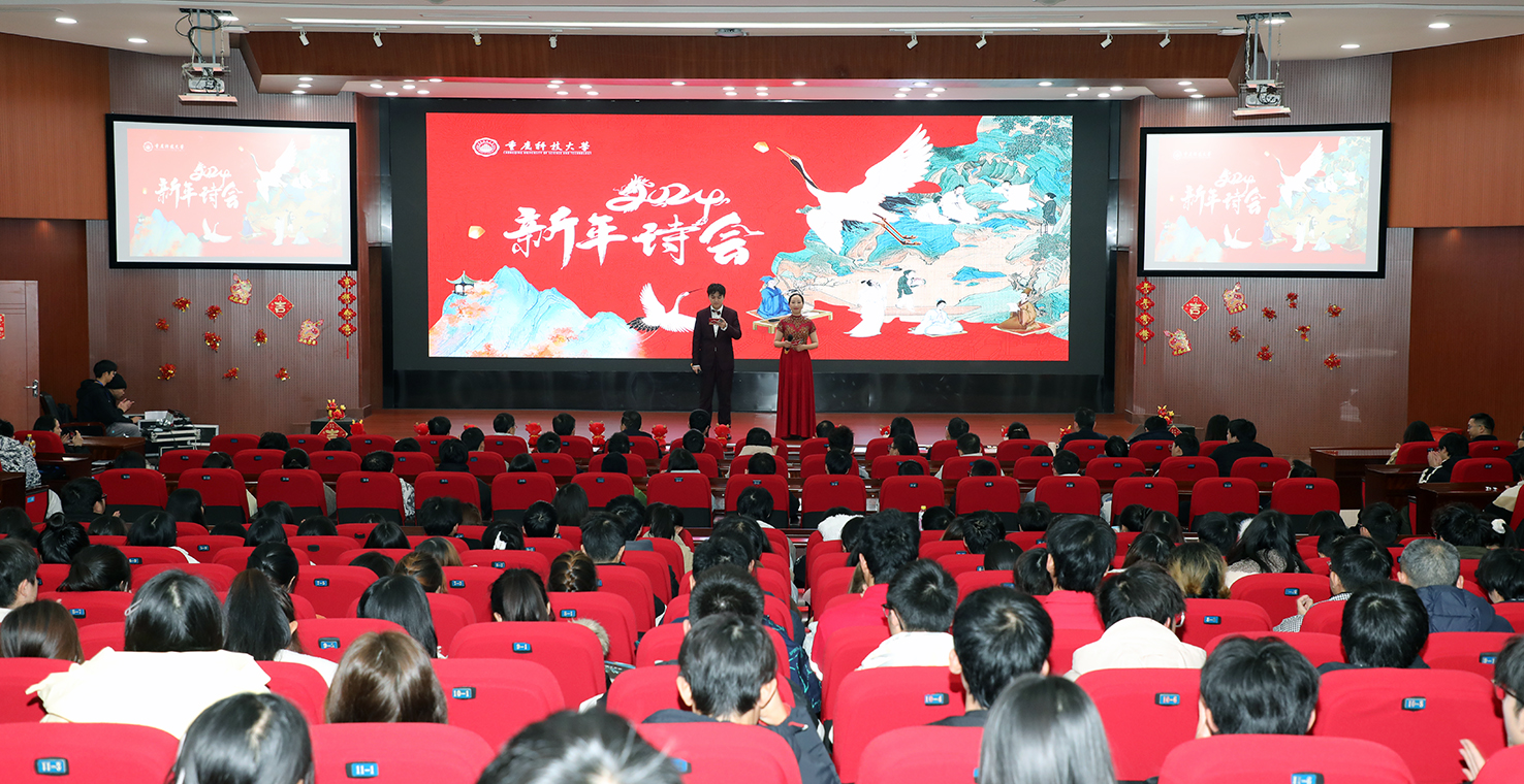 1月10日晚,由党委宣传部主办,冶金与材料工程学院党总支承办的“凝心聚力再出发,砥砺奋进新征程”星空彩票苹果手机下载安装2024年新年诗会在学术报告厅举行。学校相关职能部门及部分二级单位负责人、13个参演单位演职人员和师生代表,共计400余人参加了新年诗会。