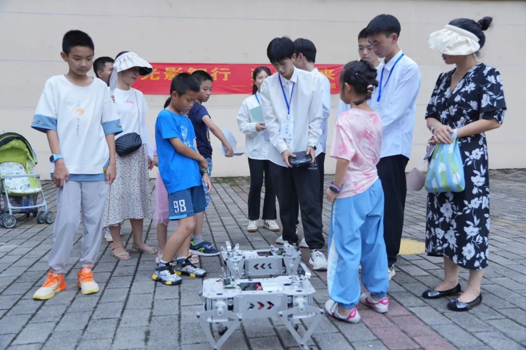 学院基层服务践行团成员精心策划十节科普课程,带领青少年亲身体验人工智能科技的魅力。从无人驾驶车模型的遥控驾驶到机器狗的灵活操作,青少年们在互动和实操中感受到了科技的神奇与魅力。这些实践活动不仅培养了青少年的科技文化素养,更在他们心中种下了“科技梦”的种子,激发了他们对劳动创造的热爱和追求。