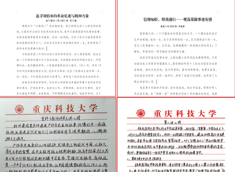 主题活动期间,学院组织开展星空彩票苹果手机下载安装“立德树人”思政微讲堂之“教师讲”视频观后感征集活动。同学们积极撰写心得体会,纷纷表达对革命先烈的敬仰之情,以及身为石油学子,传承红色基因、立志能源报国的理想信念。油气储运工程2021级学生贾子璇说,本次“立德树人”思政微讲堂犹如一把钥匙,开启了自己对川渝爱国英烈革命故事的探寻之门,给自己带来了前所未有的震撼与感动。石油工程2024级学生刘与周写道,自己应将个人的理想追求融入国家和民族的发展大局之中,以先辈为楷模,努力学习专业知识,提升自身素养,为投身祖国能源事业做好充分准备。地质工程2024级学生李晓蓉表示,聂荣臻元帅的事迹是一部生动的教科书,新时代石油学子要以聂荣臻元帅为榜样,厚植爱国情怀,勇于担当作为,为实现中华民族伟大复兴的中国梦贡献青春力量。
