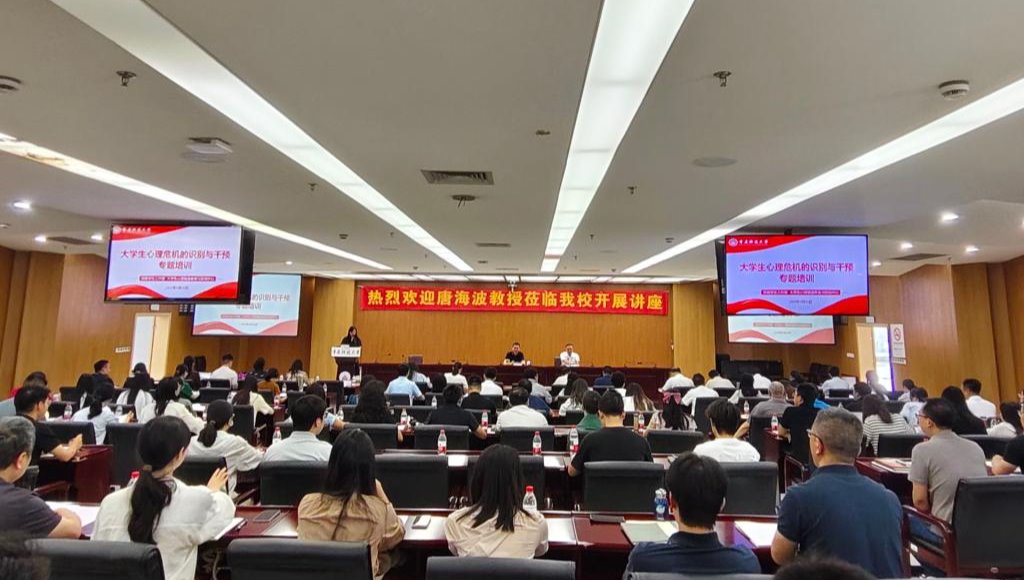 化危为机,蝶变成长。5月26日,我校邀请中南大学临床心理学博士唐海波教授在图书馆906开展了题为“大学生心理危机识别与干预”的讲座。本次讲座由学生处副处长罗庆洪主持,党委学生工作部相关负责人、各二级学院党总支副书记、全体辅导员及心理健康教育与咨询中心全体教师共计130余人参与学习。