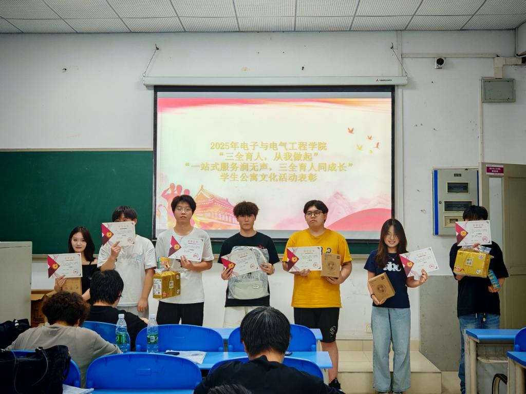 为贯彻落实“三全育人 从我做起”主题活动,引导学生在实践中受教育、长才干、作贡献,近日,电子与电气工程学院举办了2025年度学生公寓文化节表彰活动。此次活动旨在深化“一站式服务润无声,三全育人同成长”理念,通过丰富多样的公寓文化活动,营造和谐育人环境,促进学生全面发展。