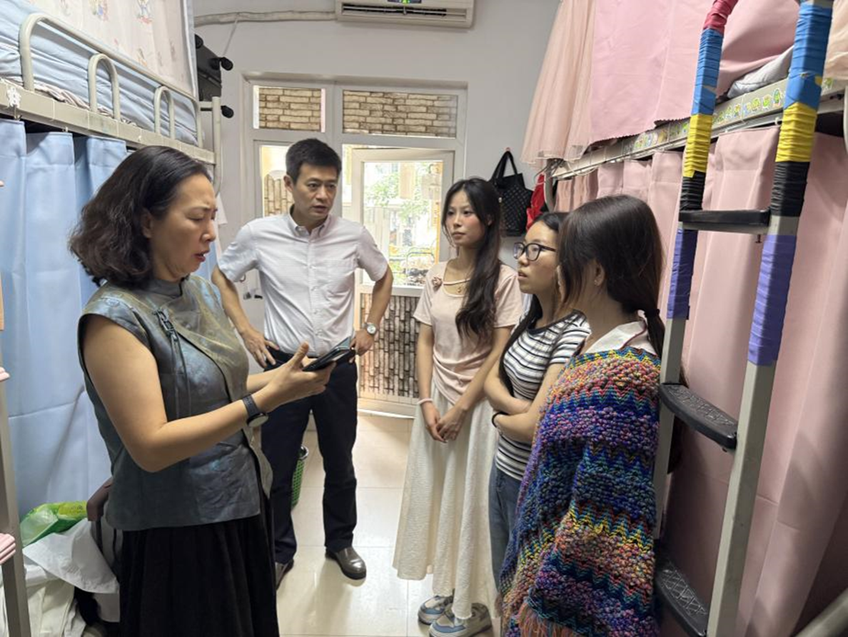 6月19日,管理学院党总支书记李旭东、院长江燕玲带队,组织联系专业科级以上干部、辅导员走访学生公寓,调研学院“一站式”学生社区建设情况。走访过程中,师生进行了深入交流,详细了解毕业生在学业完成、就业去向、生活安排等方面的情况,围绕职业发展、学业提升、婚恋交往等热点话题分享经验、答疑解惑;对大一、 大二学生在学业发展、学科竞赛、生涯规划、矛盾化解等方面进行面对面指导,并对宿舍中存在的安全隐患进行了现场排查与整改。