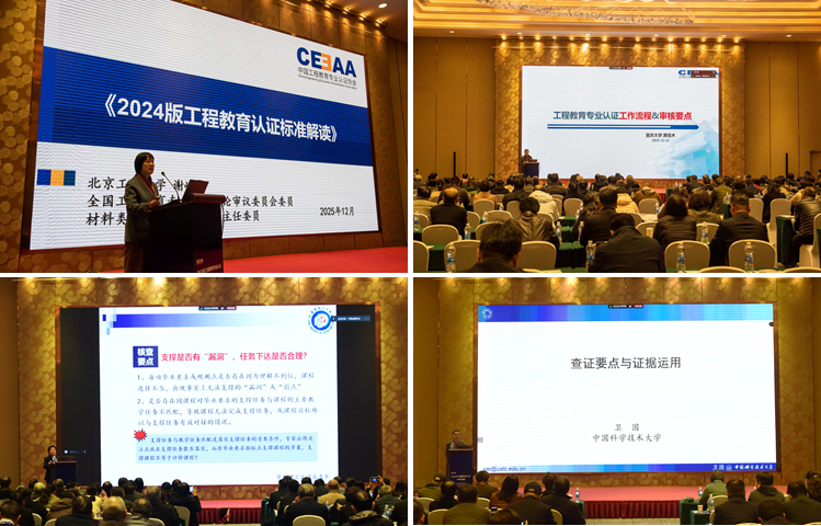 12月12日至12月13日,由中国工程教育专业认证协会主办,材料类专业认证委员会、中国金属学会承办,我校协办的“2025年工程教育专业认证专家培训会”举行。工程教育专业认证专家谢峻林、乐清华、卫国、黄佳木、龚斌、张超灿、唐颂超、易健宏、韩民,我校校长赵明阶、副校长柏伟,材料类专业认证委员会秘书长王玉金,中国金属学会相关负责人丁波、曹莉霞、罗光敏,来自全国15个专业类认证委员会、100余所高校和企事业单位的300余名认证专家齐聚山城,围绕工程教育专业认证新形势、新标准、新实践开展系统培训与深入交流。
