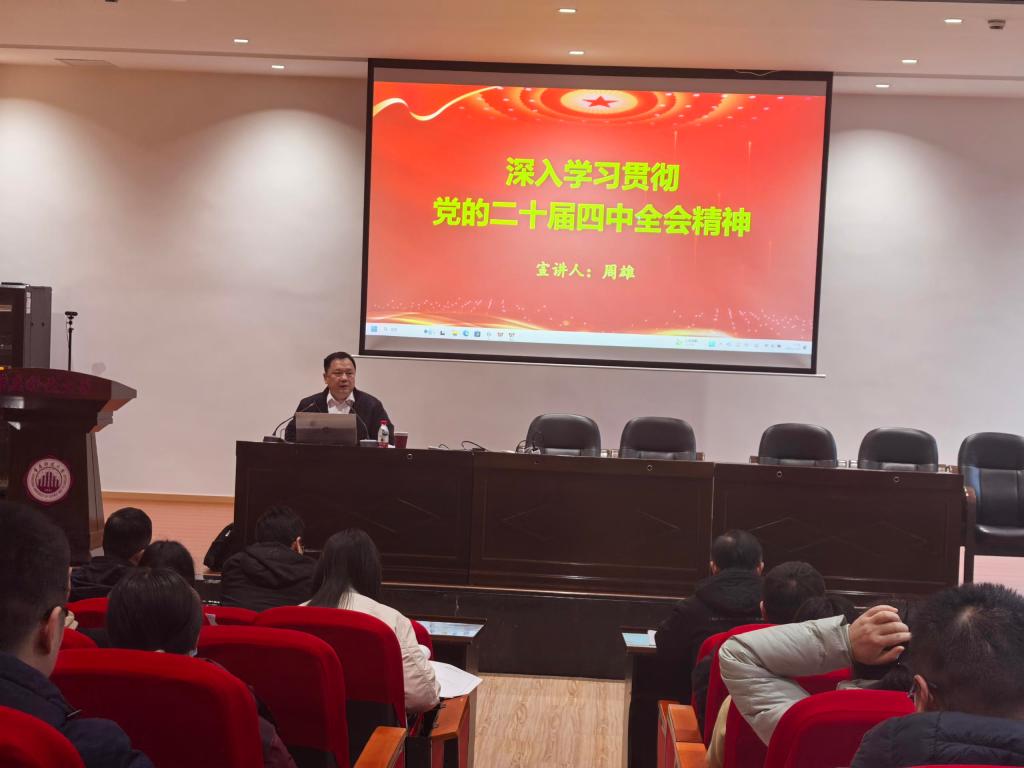12月9日下午,学校党委常委、副校长周雄在砺志楼L119会议室为冶金与动力工程学院和材料与新能源学院全体教职工作党的二十届四中全会精神专题宣讲报告。